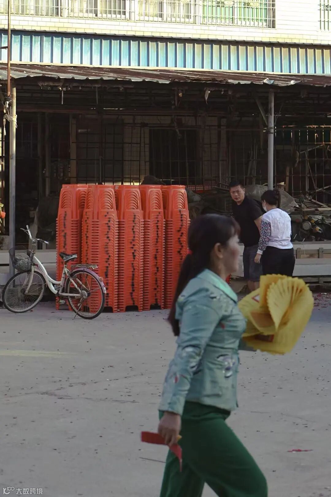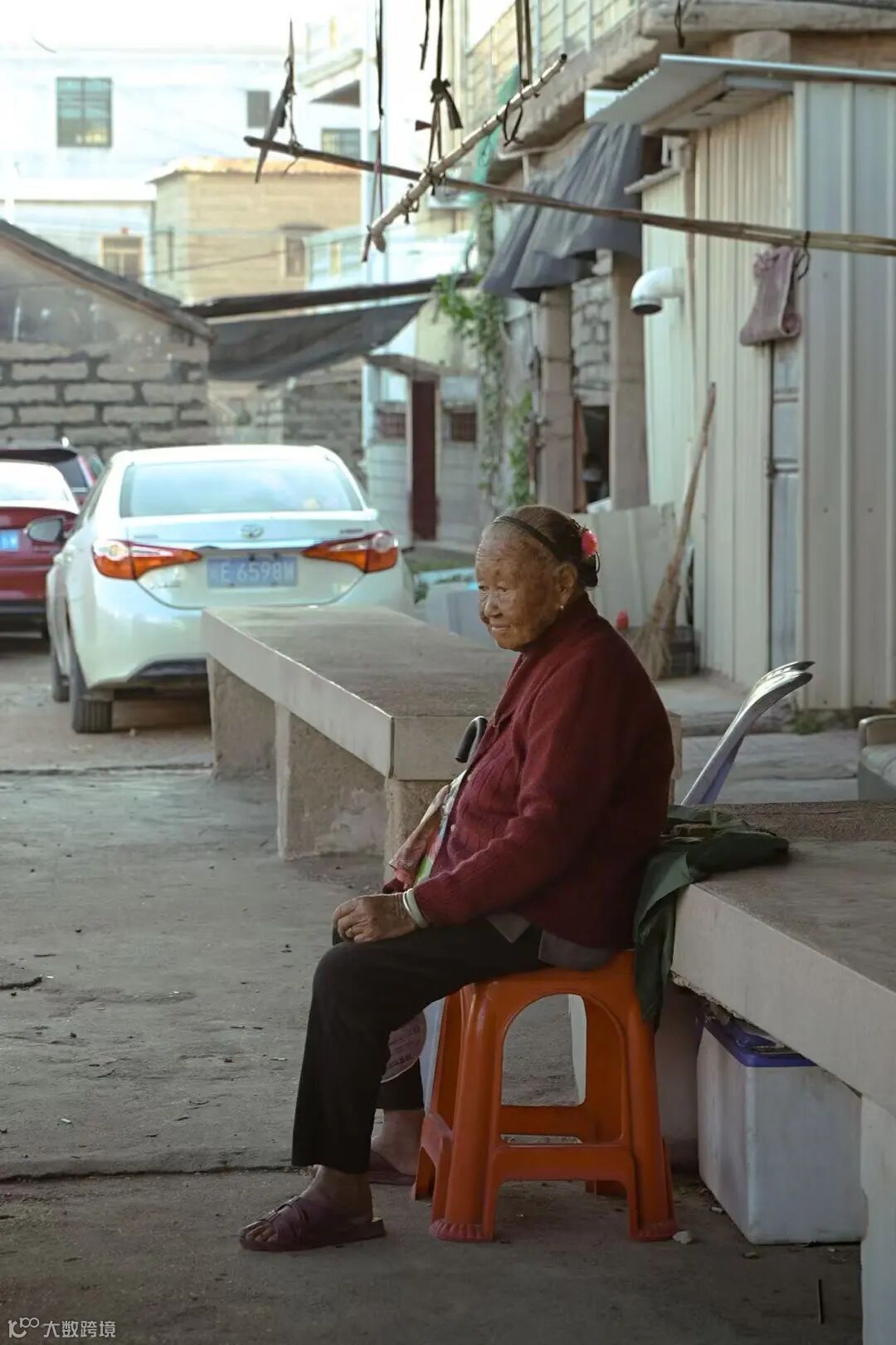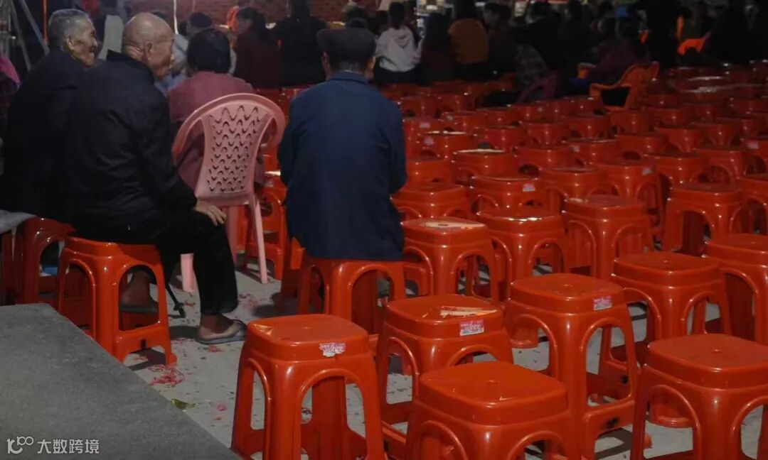 大戏的台子搭在镇子赶集用的广场上,前面摆满了大红色的塑料凳子,密密麻麻。随着暖场音乐的响起,人们三三两两的走出家门,汇入广场。许多阿公阿嬷拖着自己家里更舒服的椅子,放下,把塑料凳推到一边,坐下,转过头跟旁边的同伴聊着天,等戏开场。