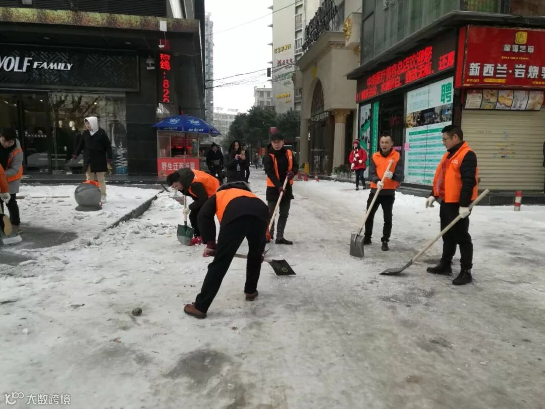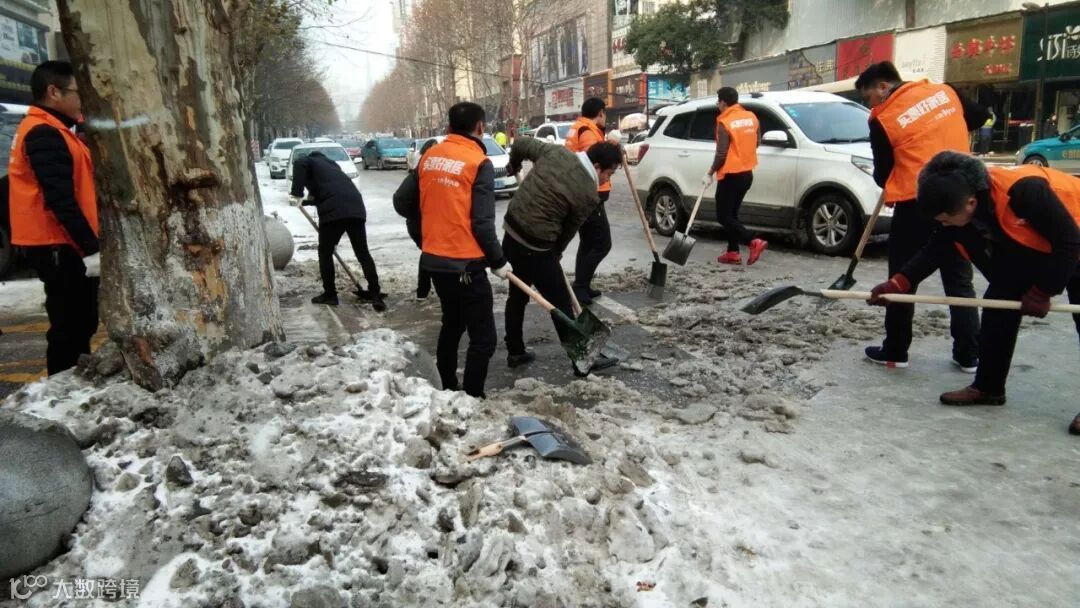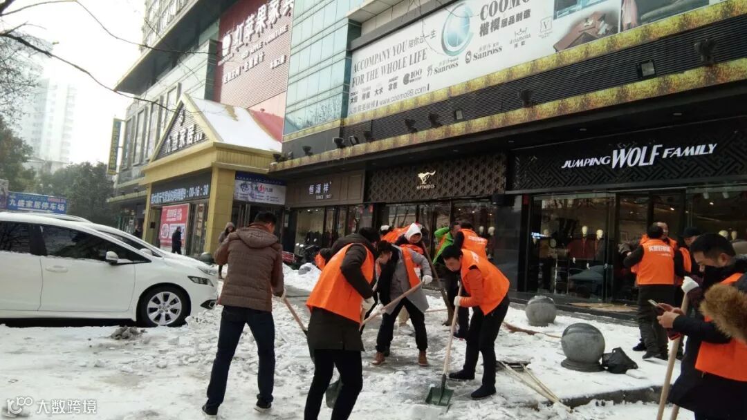 路况紧张,交通拥堵,事故多发,这场大雪真是几家欢喜几家愁。再宽的道路,被冰雪封锁,也是无计可施。就在今日,晴转多云的好天气。土桥新九盛所有小伙伴及部分商户老板,自主撂起铁锹,开始了锹雪行动!