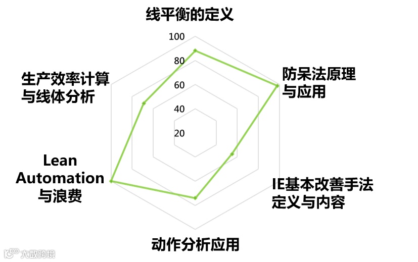 ①动作分析应用、IE基本改善手法运用、生产效率计算与线体分析微稍薄弱