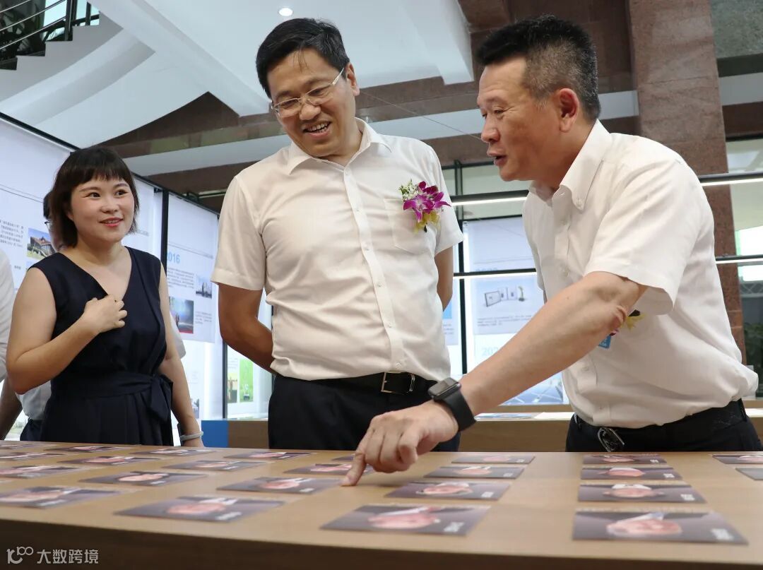 开幕式后,所有与会的台达主管和领导一同参观台达50周年展,黄陆坤先生为邓卫洪书记介绍展览中的内容。观展的领导们从展览中重温自1992年与台达携手筚路蓝缕,创立厂区、在地经营的经历,辉煌成绩、展望未来,都露出欣慰、感动的神情。