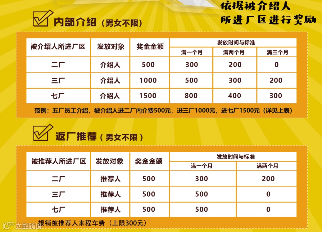 依据被介绍人所进厂区进行奖励