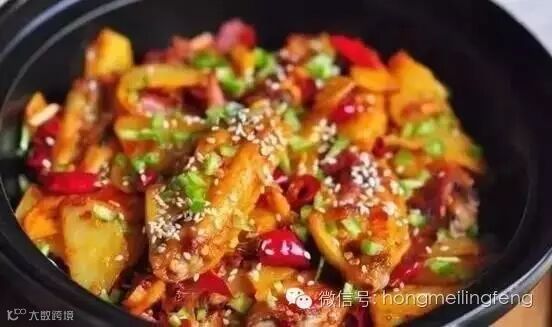 装入砂锅煲,直接小火干烧至微焦,撒上青椒碎即可。