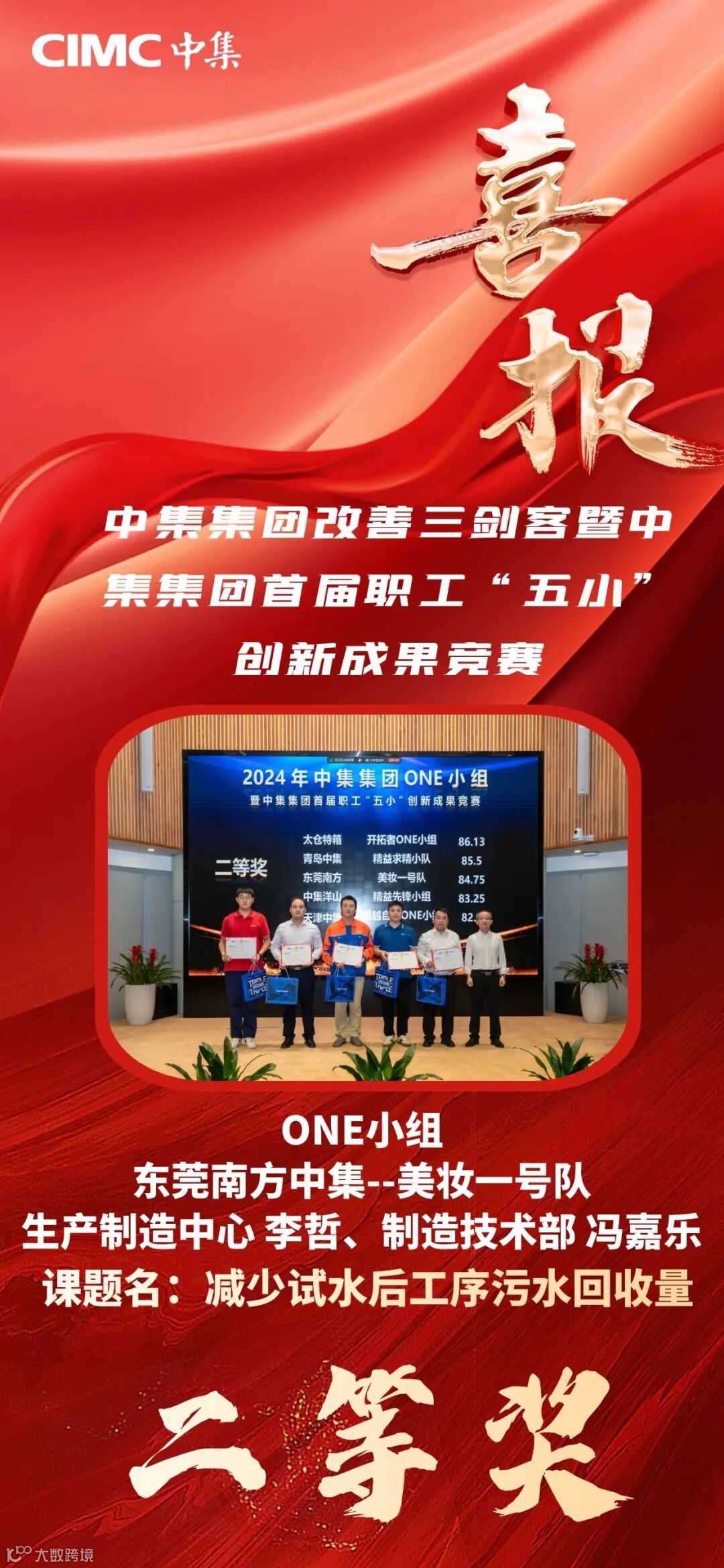 南方中集生产制造中心制造一部李哲、制造技术部冯嘉乐所组成的“美妆一号队”荣获