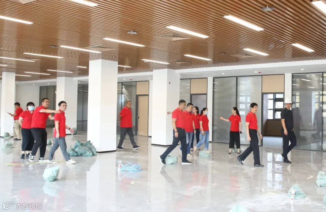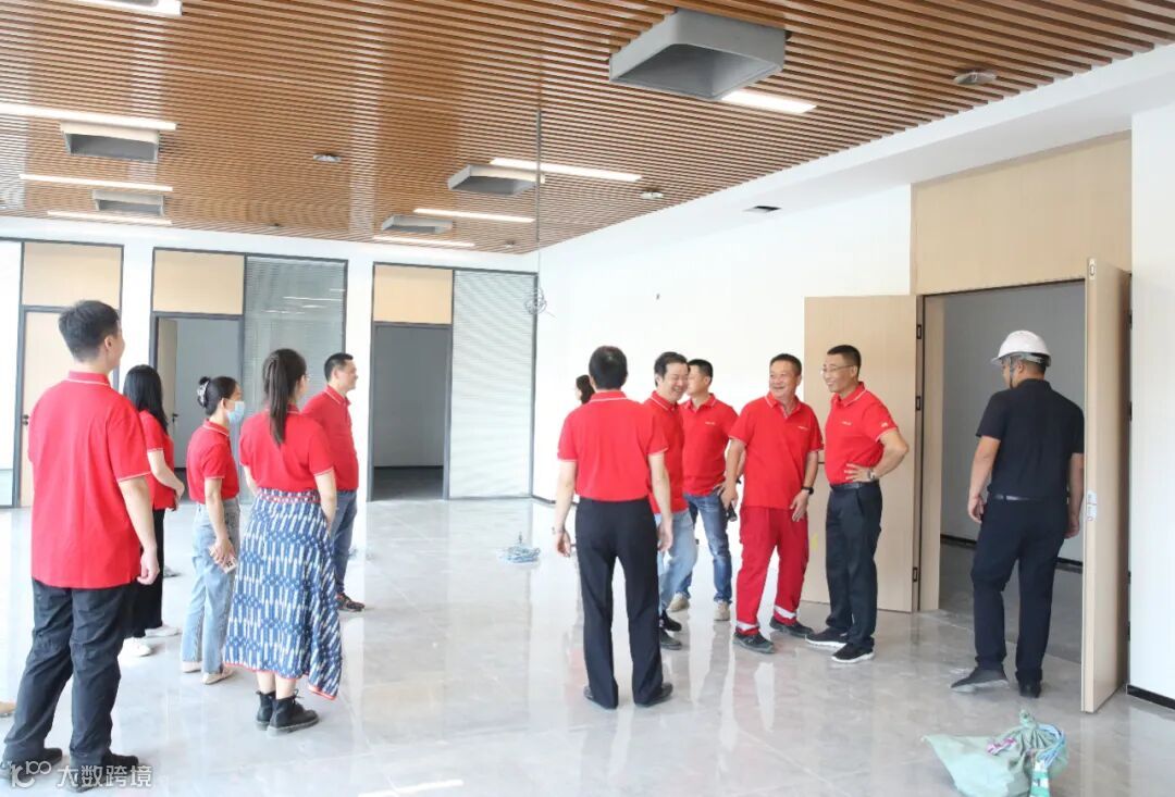 周年庆典背景板上签名并合影留念。然后一同参观公司正在筹建的办公大楼。