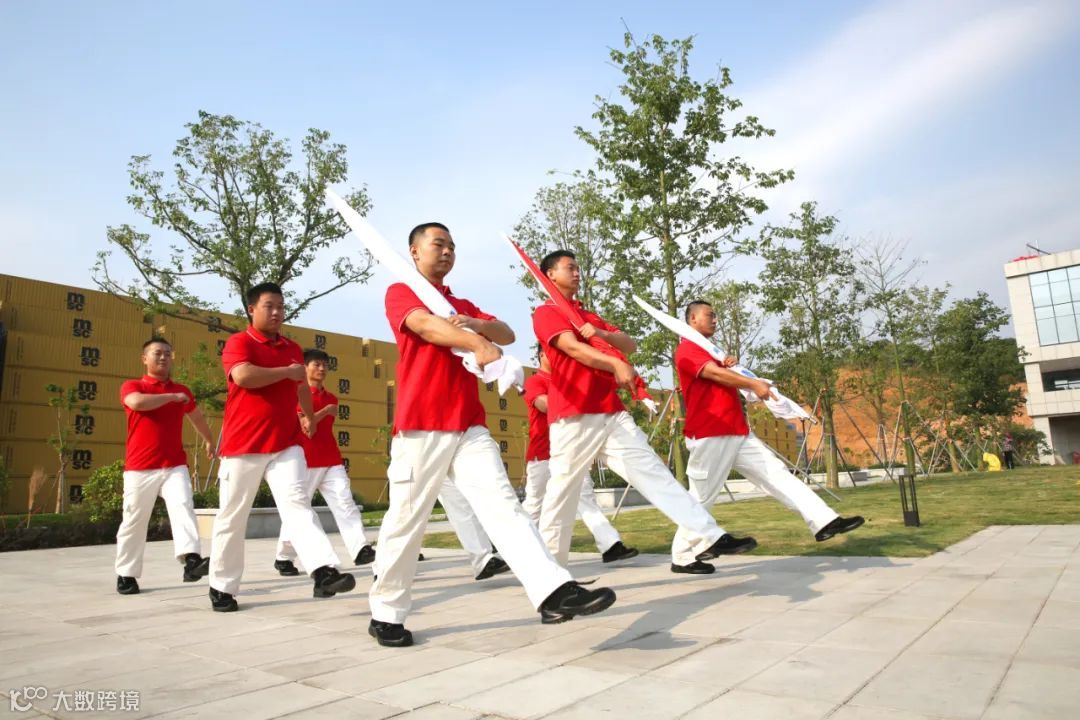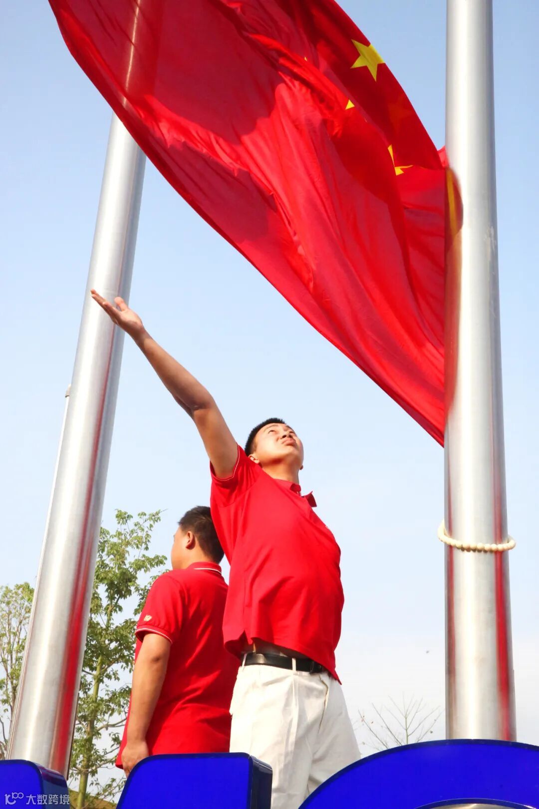 “请旗手出旗”指令话音刚落。九位旗手迎着灿烂的朝霞,身姿挺拔,迈着坚定的步伐走向升旗地。激昂的《义勇军进行曲》响起,全体参会人员面向国旗,神圣而庄严地行注目礼,肃立致敬。随后,豪迈的《中集之歌》也响彻在公司上空。徐徐上升的旗帜,代表着公司将继续坚定不移地迈步前进。
