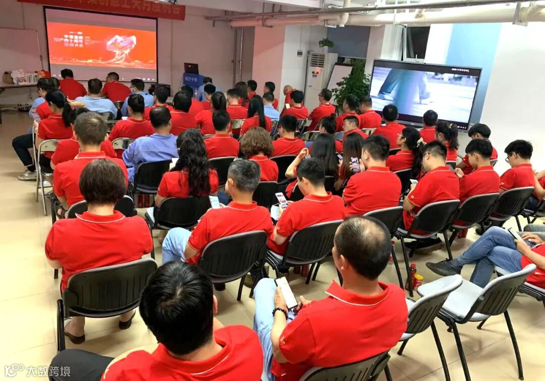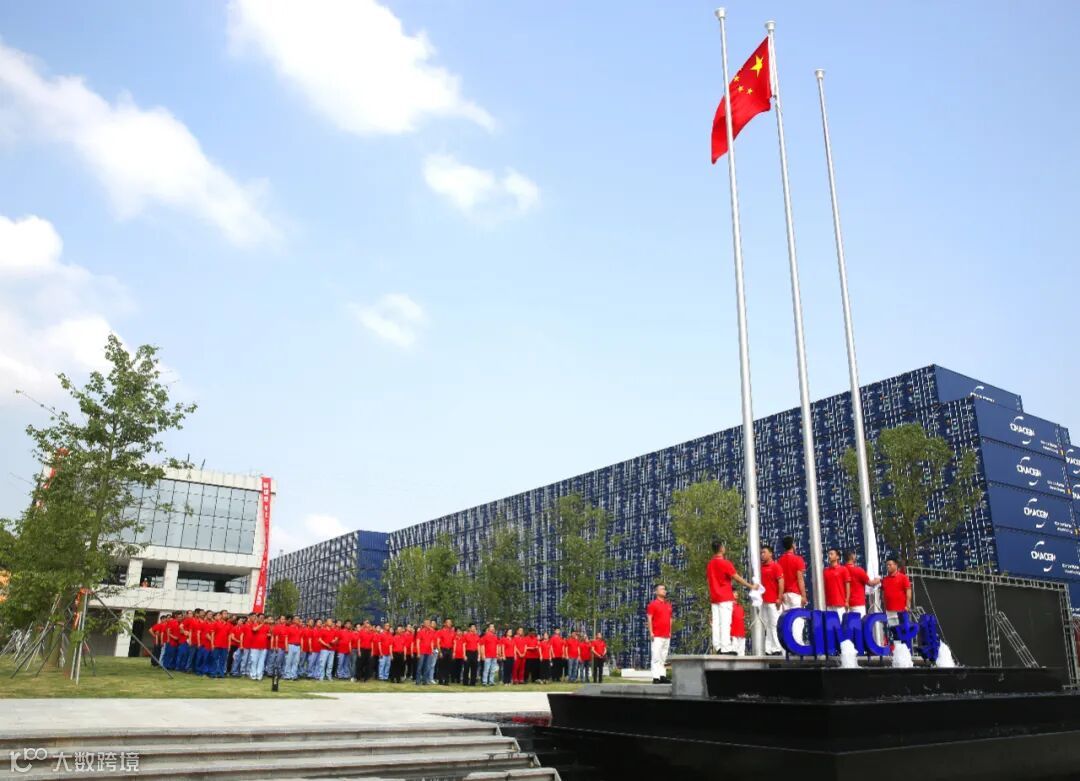 人参加了升旗仪式。全体人员身着统一的红色中集日纪念衫肃然而立,现场变成一片红色海洋。管理企划部吴钢经理主持仪式。
