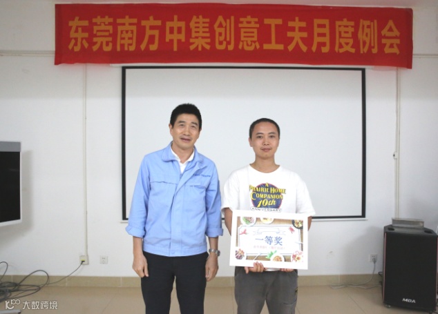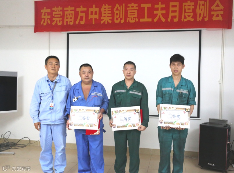 随后由行政事务部经理刘昌福、生产制造部经理杨军、常务副总经理刘晓旭等领导分别上台为获得三等奖、二等奖和一等奖的提案分享人颁发荣誉证书和纪念奖品,并合影留念。