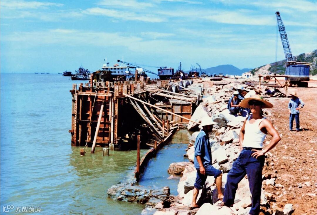 △1979年蛇口工业区五湾顺岸码头施工现场。
