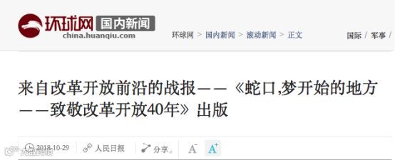 由招商蛇口纪念改革开放40周年“四个一”工程指导发起,蛇口消息报社统筹策划、人民日报出版社出版的《蛇口,梦开始的地方——致敬改革开放40年》书籍,经过历时近一年的编纂,近期正式出版面市。
