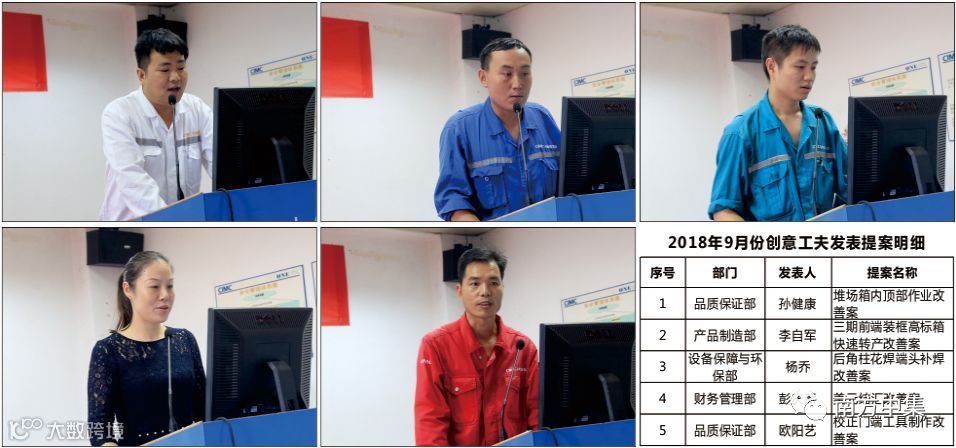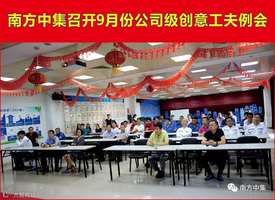 9月27日下午,公司级创意工夫月度例会在培训教室召开。南方中集副总经理刘晓旭、资源中心主任陈竟华及相关部门经理、文干和一线员工代表参加了例会。