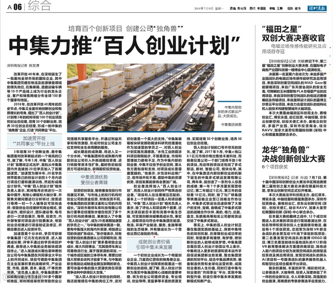 2018年,在改革开放40周年的历史节点,中集又全面吹响创新创业和有质增长的号角,提出了“百人创业计划”,计划用3年的时间寻找100个创业项目和创业总经理,培育30个创新业务,培养30位创业总经理,形成一批中集的“独角兽”企业,打造“共同事业”平台。