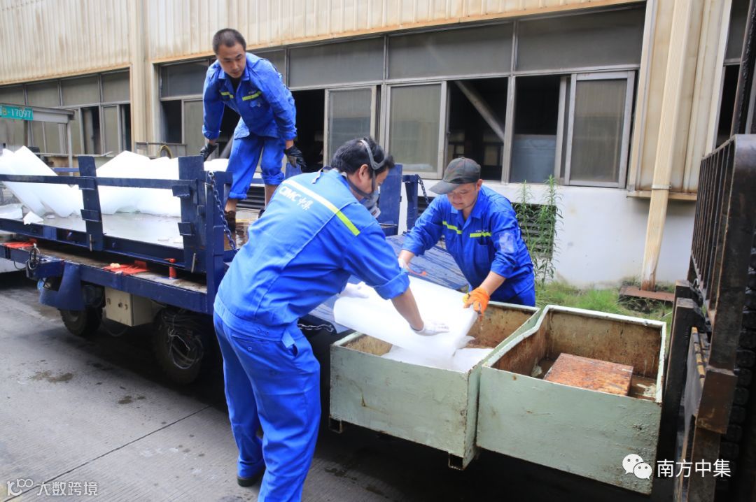 高温来临,公司领导也为一线员工提前做好了防暑降温的措施。每天早晨,工作刚刚开始,温度还不算高,就有产品制造部综合班送冰的工人们及时将冰块送到车间的每个生产班组,为车间里面的一线员工们带来一丝清凉。
