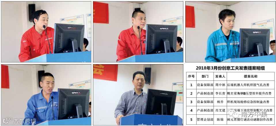 随后,设备保障部周中林、杨乔,产品制造部李长青、肖文建,管理企划部陈锦,分别上台发表了创意工夫提案,分享了他们实施提案的想法、改善措施、心得体会和改善效果视频。