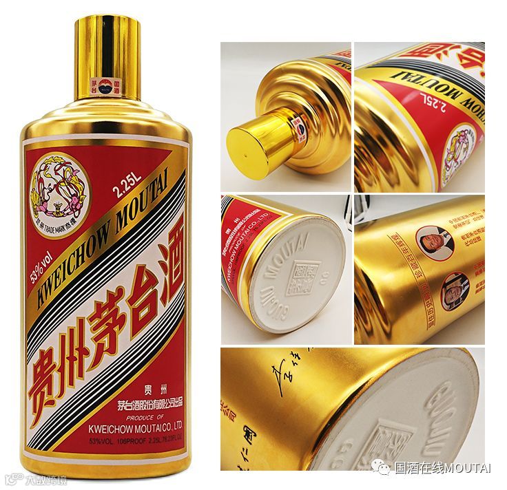2.25L为“茅五会见酒”。一套两瓶,分别为2.25L茅台酒和2.25L五粮液,两款容量加起来共9(通“酒”)斤。