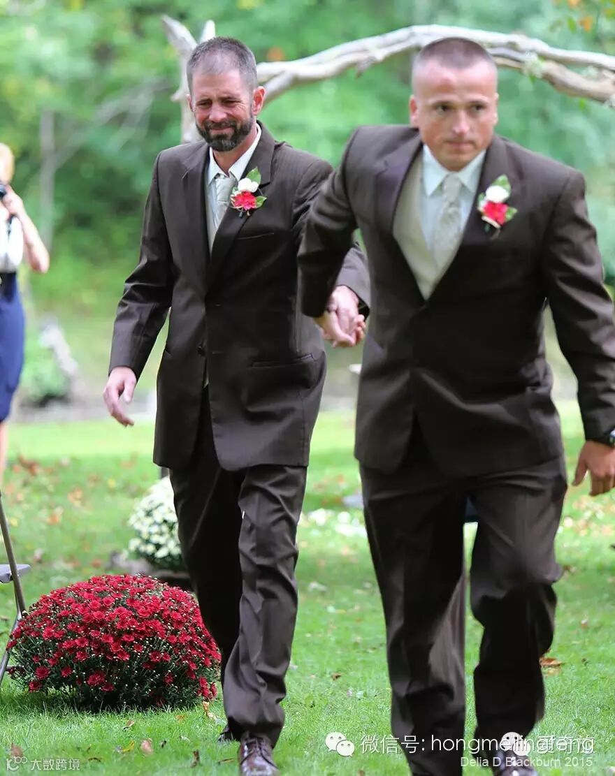 原来亲爸想继父一起见证他们女儿最神圣的一刻。继父刚开始有点不好意思,但最后他俩一左一右陪着女儿走向了新郎,并一起将女儿的手递过给新郎。