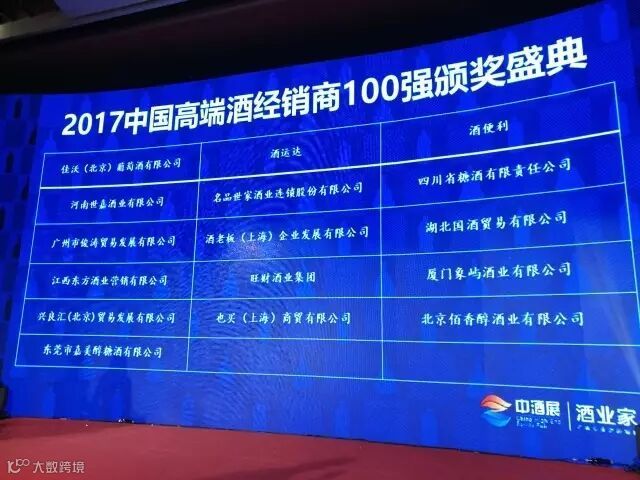 “2017中国高端酒经销商100强”