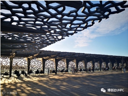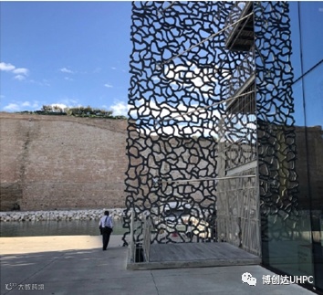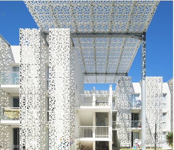 UHPC的优异⼒学性能,使⼤镂空率镂空板厚度得到有效控制,平衡了建筑物立面和顶⾯的防晒及采光,减轻了⾃重和对结构的荷载。