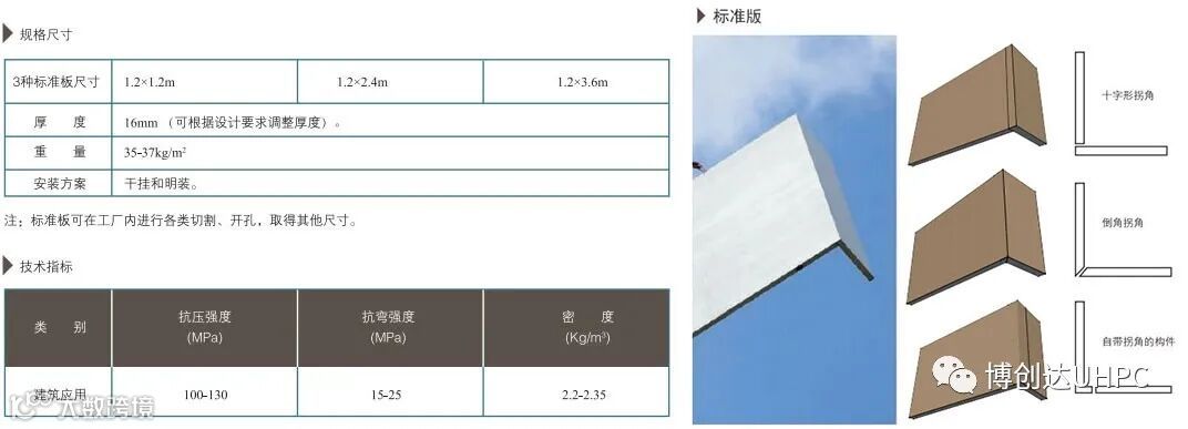 UHPC的各项性能指标均大幅度优于普通混凝土,高性能混凝土和GRC(Glass-Fiber Reinforced Concrete)。在建筑结构,建筑装饰,建筑表皮,创意设计家居及产品等方面有着广阔的应用前景。