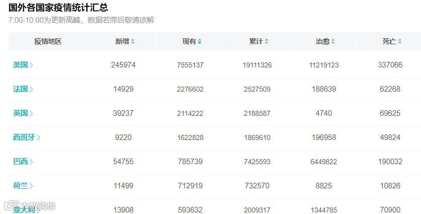 美国昨日新增20万确诊,累计死亡33万+