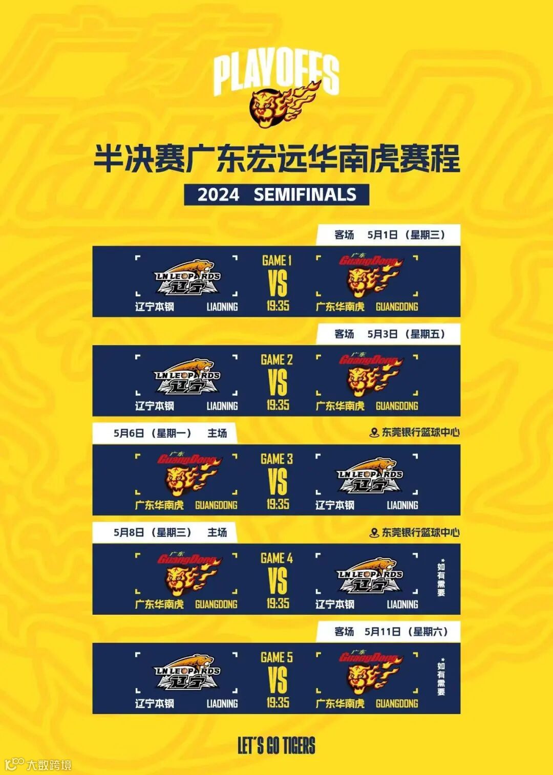 5月6日(周一)广东华南虎队将在主场