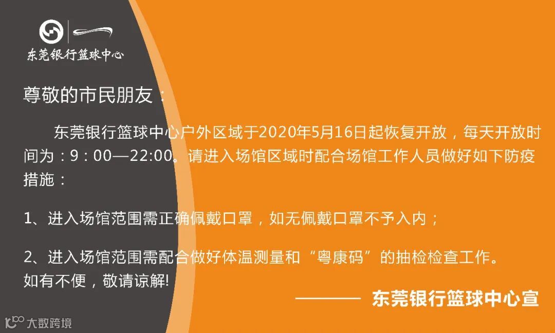 关于东莞银行篮球中心户外区域恢复开放的通知