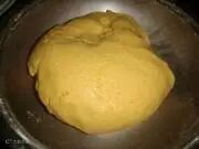 南瓜蒸熟水份较多,糯米粉相对要多掺些,要给点白糖。