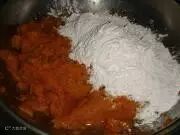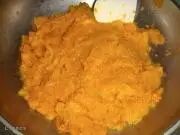 加入适量的糯米粉和白糖。(南瓜蒸熟水份较多,糯米粉相对要多掺些,所以要给点白糖)