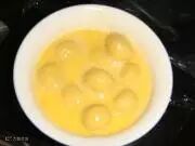 鸡蛋打散,把南瓜球放进去滚滚。(带一次性手套操作)
