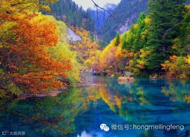 都说九寨归来不看水~秋天是九寨沟最为灿烂的季节,五彩斑谰的红叶,彩林倒映在明丽的湖水中。缤纷的落英在湖光流韵间漂浮。悠远的晴空湛蓝而碧净,自然造化中最美丽的景致充盈眼底。