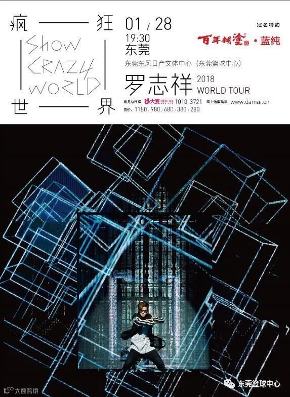 2018罗志祥疯狂世界演唱会东莞站将于1月28日(周日)在东风日产文体中心开唱,小猪将为"老婆们"设计全程Surprise新环节,演唱会门票已经在大麦网开售。