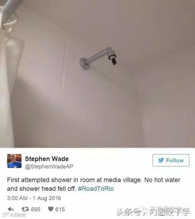 话说,里约奥运会就要开始了,各国代表队都已经抵达里约开始最后的备战 然而这几天各国运动员和媒体记者们的朋友圈画风都是这样的... 【抢戏的马桶和浴帘】 澳大利亚男篮运动员Andrew Bogut.....这哥们身高2.13米.... #奥委会豪华宿舍 我在组装浴帘,这样我们就可以洗澡并且水就不会漫出来啦