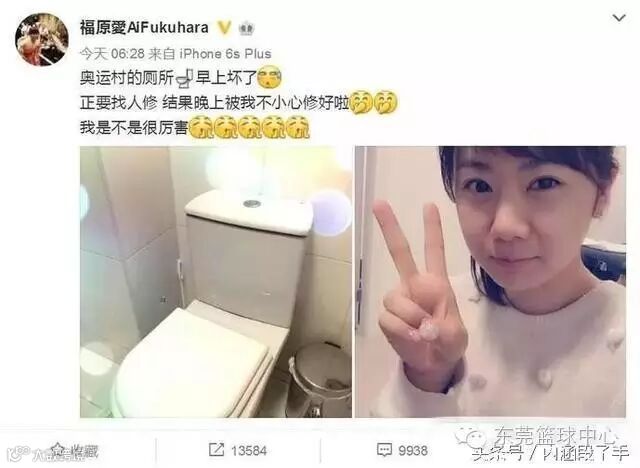 日本乒乓球手福原爱....修好了宿舍的马桶....