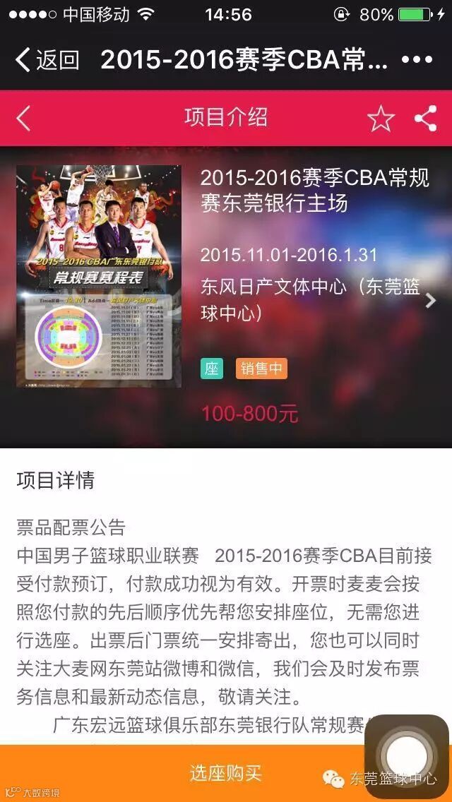 新赛季广东东莞银行队各场次微信购票操作方式: