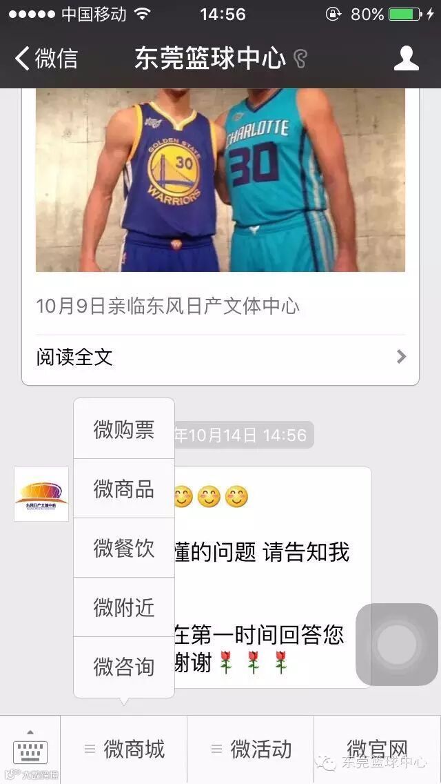 1、关注“东莞篮球中心”微信服务号