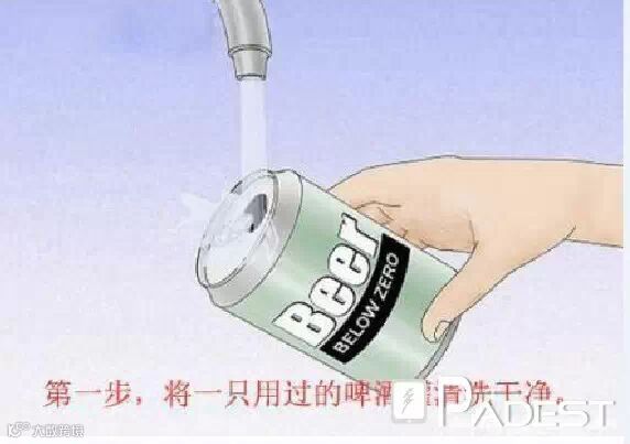 第一步,将一只用过的啤酒罐清洗干净