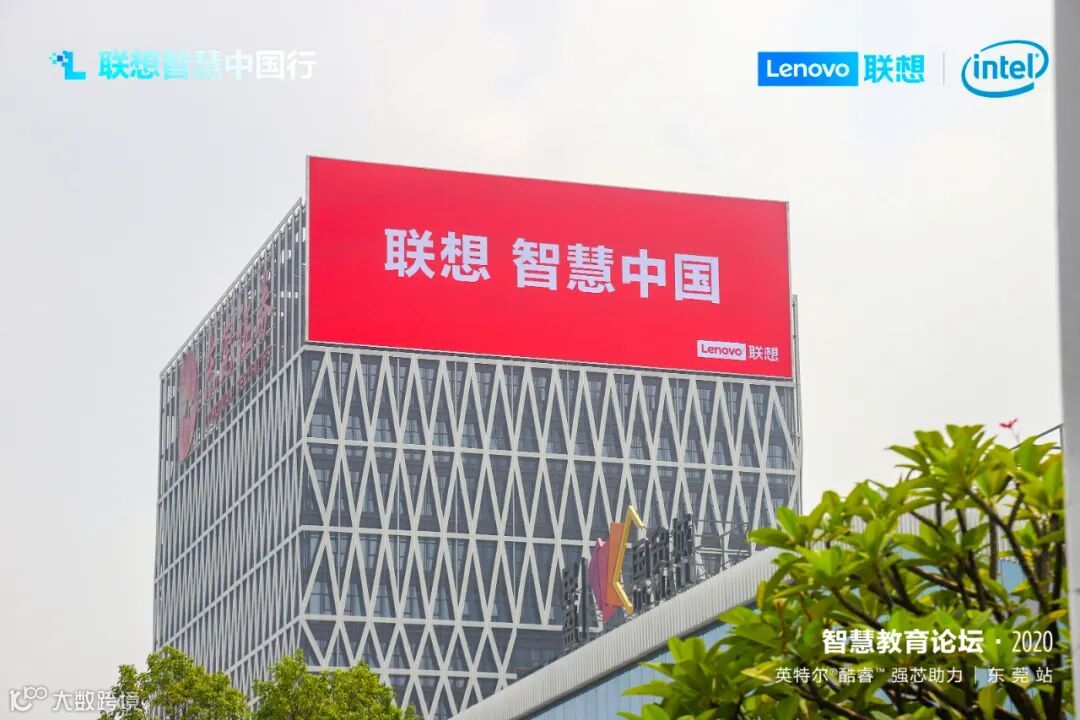 论坛期间,“联想智慧中国”大屏在东莞民盈国贸南屏点亮。