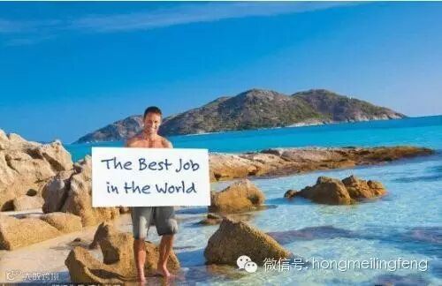 半年薪水10万美元 澳大利亚昆士兰州旅游局提供的图片,澳大利亚昆士兰州大堡礁。一名男子站在Lizard岛上,举着世界上最好的工作的标语。