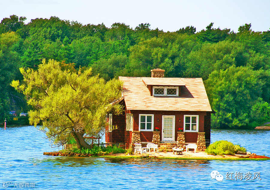 在加拿大千岛群岛,坐在小门廊前。