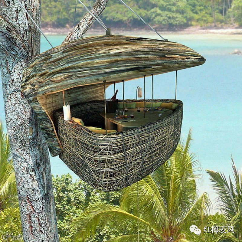 在泰国苏尼瓦奇瑞,树上进餐吊舱。