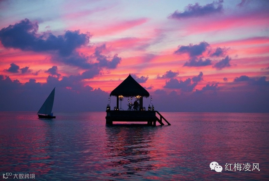 在马尔代夫,体验漂浮海面的小屋。