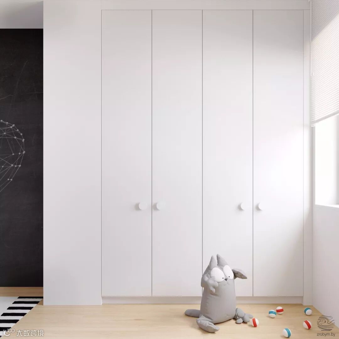 衣柜采用全白平板样式门板,柜子与墙体完全融合,空间显大