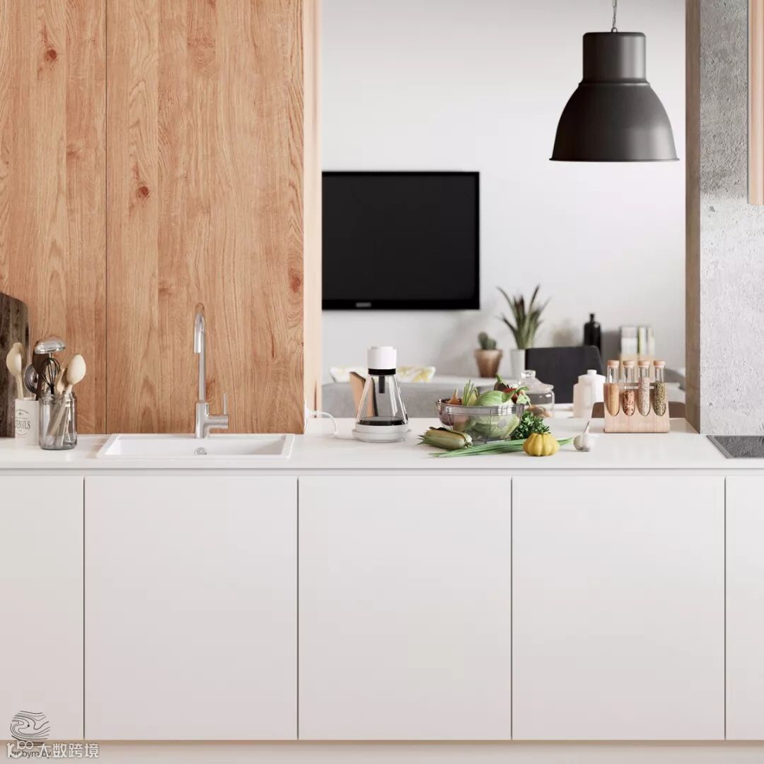 厨房:白色橱柜,木色墙面板,这些设计在工艺难度上都不是能够强以实现的家具,和标品。整个民宅用北欧风装饰打造的费用是非常低廉的。效果也是有目共睹的。