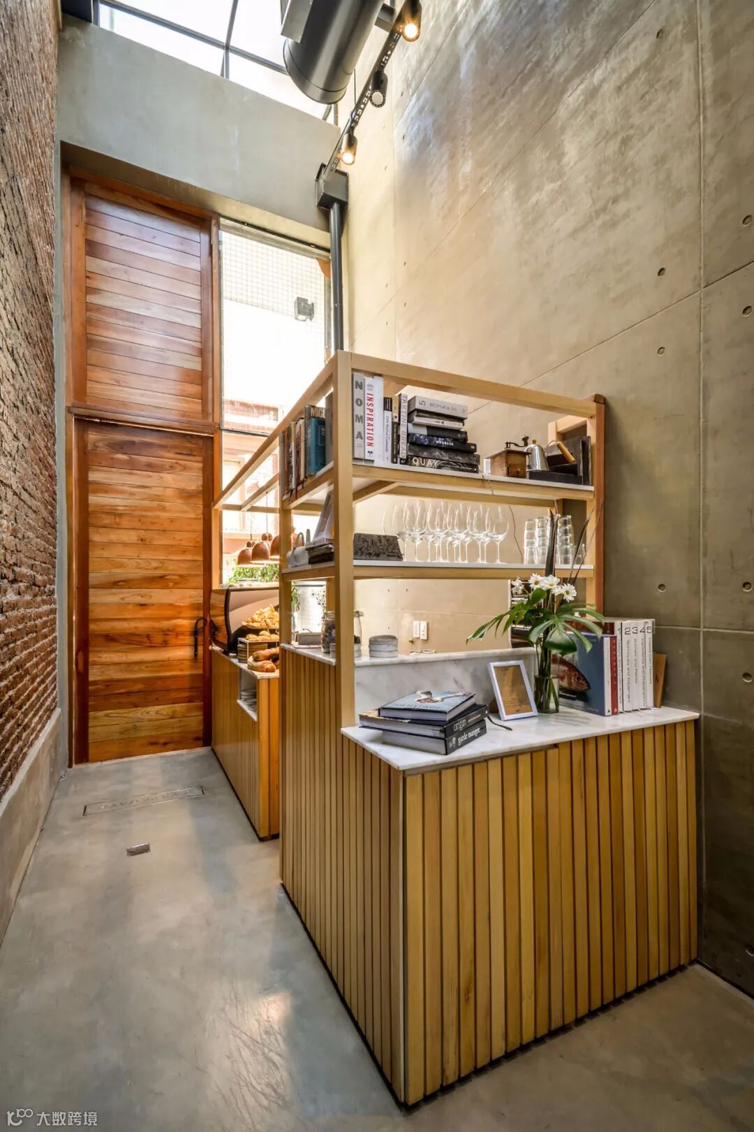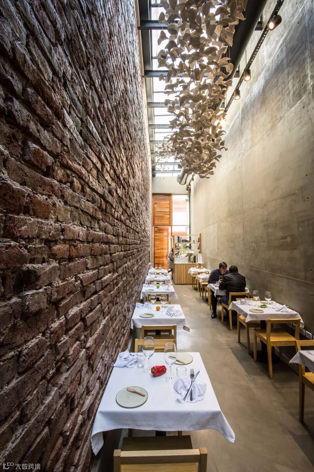 深入其中才发现整个餐厅位于俩栋楼的夹缝小巷之中,但却让人感觉十分通畅,红砖墙与水泥墙的对立,仿佛复古与现代的碰撞,整个餐厅的风格瞬间灵动起来。