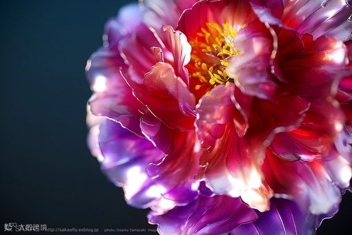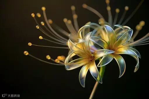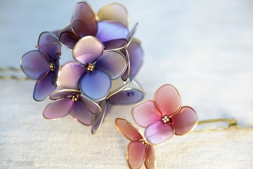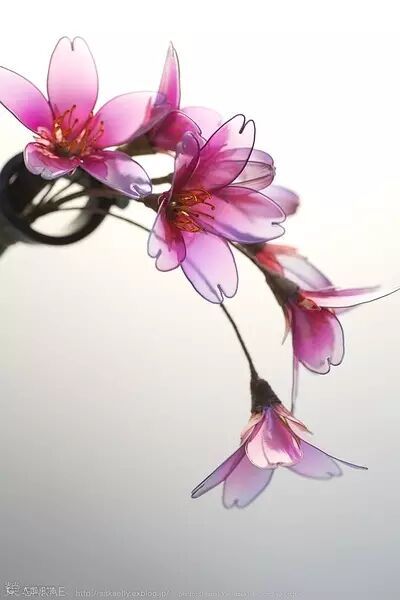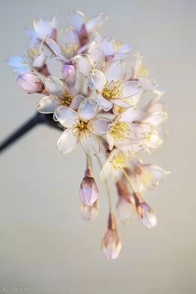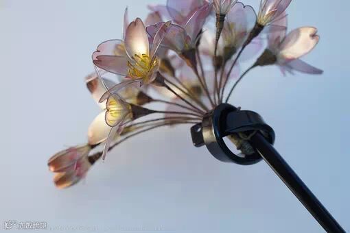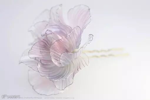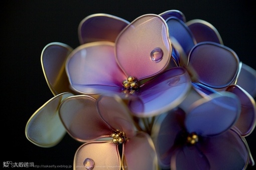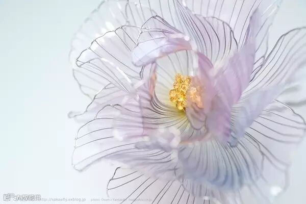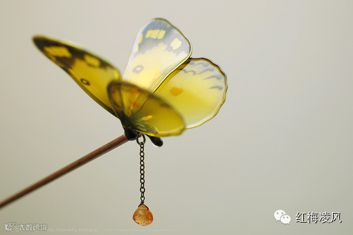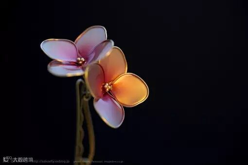 无论桔梗、牡丹、樱花或是翩然起舞的蝴蝶,都细节丰富、生机盎然,薄琉璃般的材质发出着淡淡珠光,让它们更显娇美。