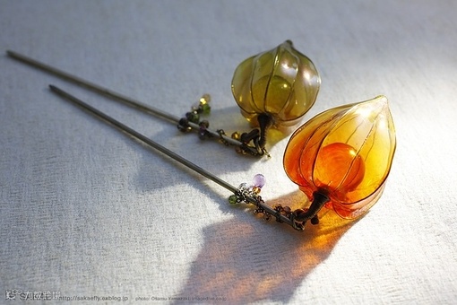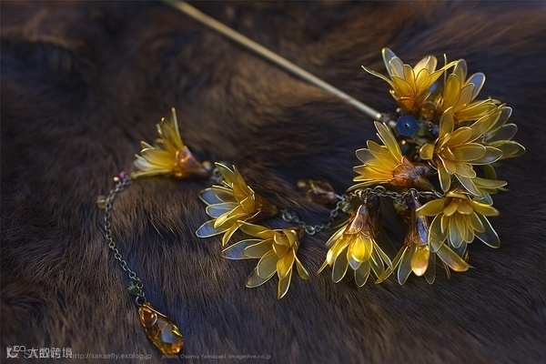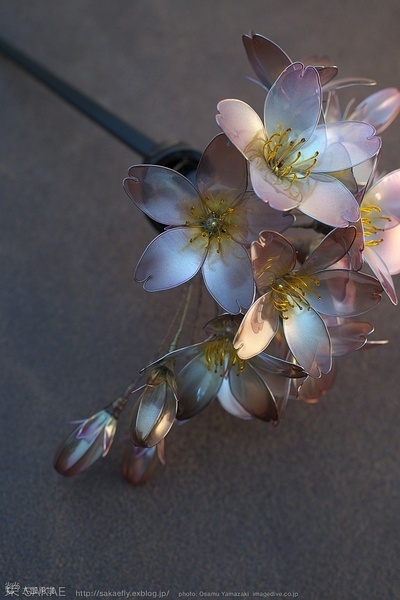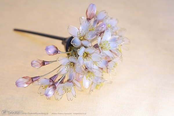 Kanzashi是一种传统发饰, 从日本Jōmon时代就开始广泛使用, 在那个年代日本人迷信这个发饰有神秘力量, 可以驱邪。Sakae利用树脂、铜等材料以花为原型制作出美丽的和风发簪,有水芙蓉,樱花,芍药,紫藤花,彼岸花,鬼灯(酸浆花),月下美人(昙花),桔梗,梅和牡丹。