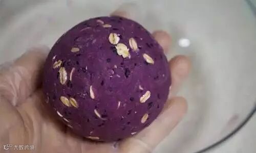 4、这次我放入了43克左右的面粉,揉成的紫薯团不散也不黏,这样的状态就是可以了。