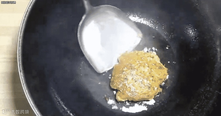小火慢煎约30秒,再翻面煎另一边