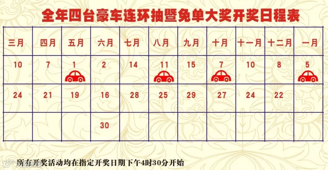 所有开奖活动均在指定开奖日期下午4时30分开始