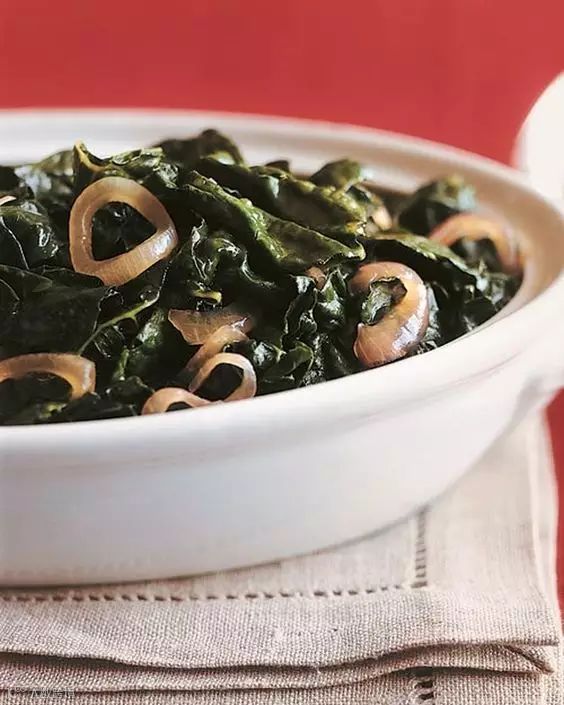 第三步:锅中放入少量椰子油小火烧热,将切碎的白洋葱与紫衣甘蓝放入锅中炒至柔软,加入适量盐调味
