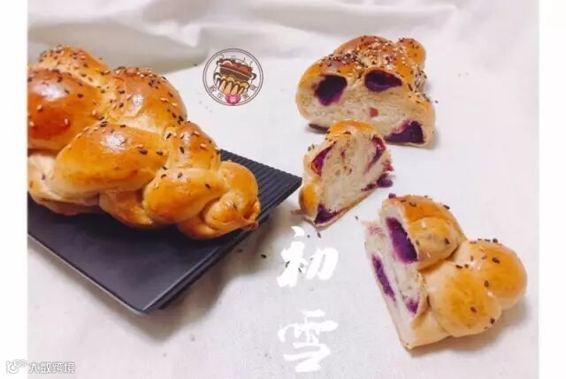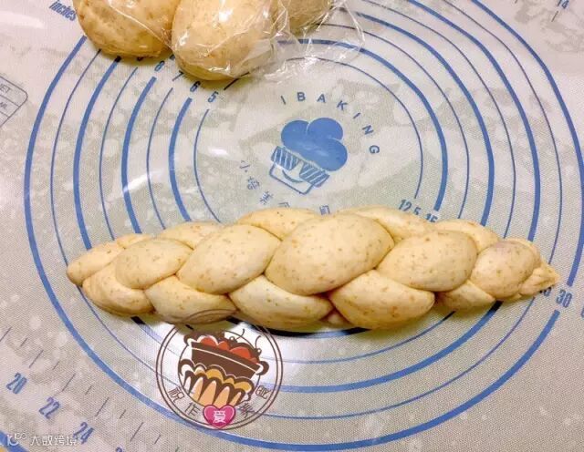 8.最后完成的样子如图。一开始包紫薯馅时,就要两头稍微细些,最后编成这样才会容易一点。然后放入嫩烤箱,发酵两倍大后刷蛋液。